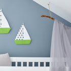 De zeilboten zijn tussen de 36 en 42 cm hoog, zijn aan de buitenkant gemaakt van 100% katoen en zijn machinewasbaar. Om ervoor te zorgen dat ze stabiel en stevig aan de muur hangen, zijn ze aan de binnenkant extra versterkt met licht vlies. Inhoud: 2 zeilboten.