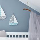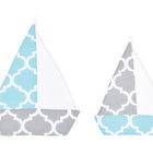 Die Segelboote sind zwischen 36 und 42 cm groß, bestehen Aussen aus 100% Baumwolle und sind in der Waschmaschine waschbar. Damit sie stabil und steif an der Wand hängen sind sie von Innen zusätzlich mit leichtem Vlies verstärkt. Inhalt: 2 Segelboote.