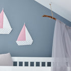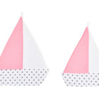 De zeilboten zijn tussen de 36 en 42 cm hoog, zijn aan de buitenkant gemaakt van 100% katoen en zijn machinewasbaar. Om ervoor te zorgen dat ze stabiel en stevig aan de muur hangen, zijn ze aan de binnenkant extra versterkt met licht vlies. Inhoud: 2 zeilboten.